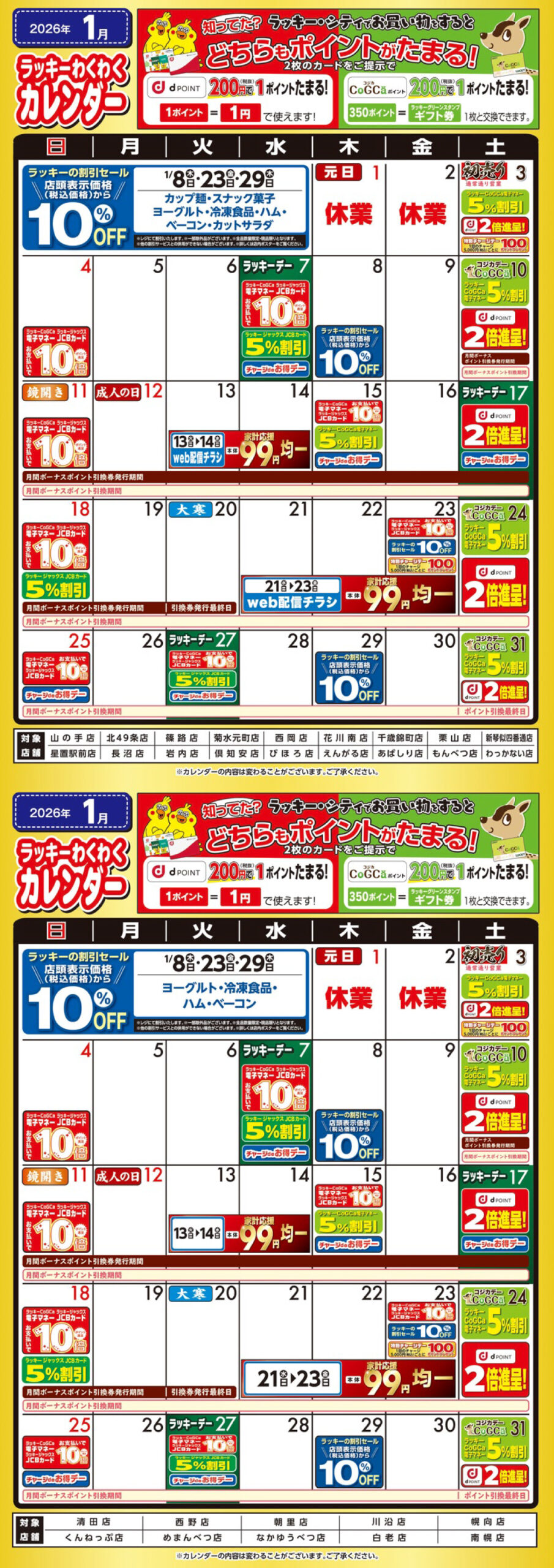 2026年1月わくわくカレンダー